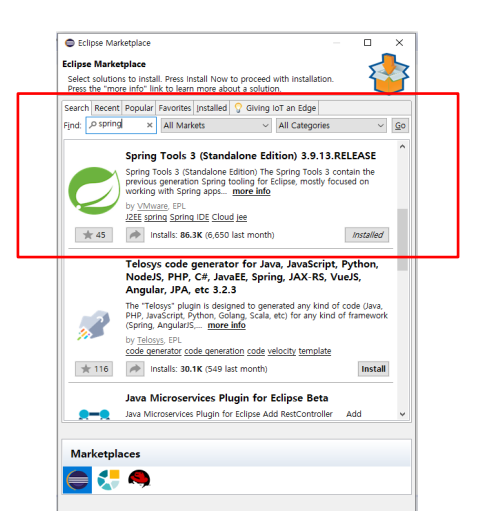 상단 help > eclipse Marketplace.. 클릭