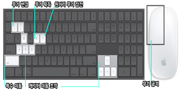 마우스 왼쪽(fire1)은 무기를 소지했을 때 마우스 좌클릭 시 해당 무기로 공격을 합니다.
