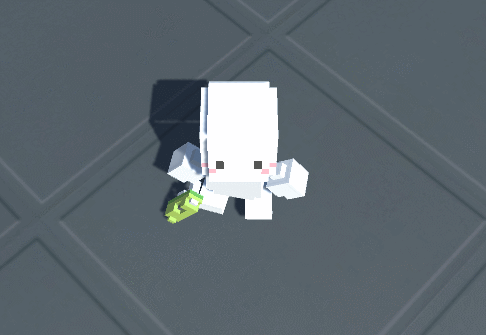 무기를 구매했다면, R키를 눌러 마리모가 무기를 주울 수 있습니다.