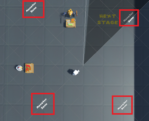 무기와 총알을 구매했다면, 게임 상점 근처에 있는 NEXT STAGE 공간으로 이동하면 자동으로 스테이지가 바로 시작됩니다.