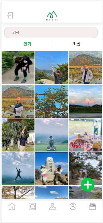 SNS 기능의 화면이다. 인기 게시물과 최신 게시물을 구분하여 리스트로 출력할 수 있도록 하였다.