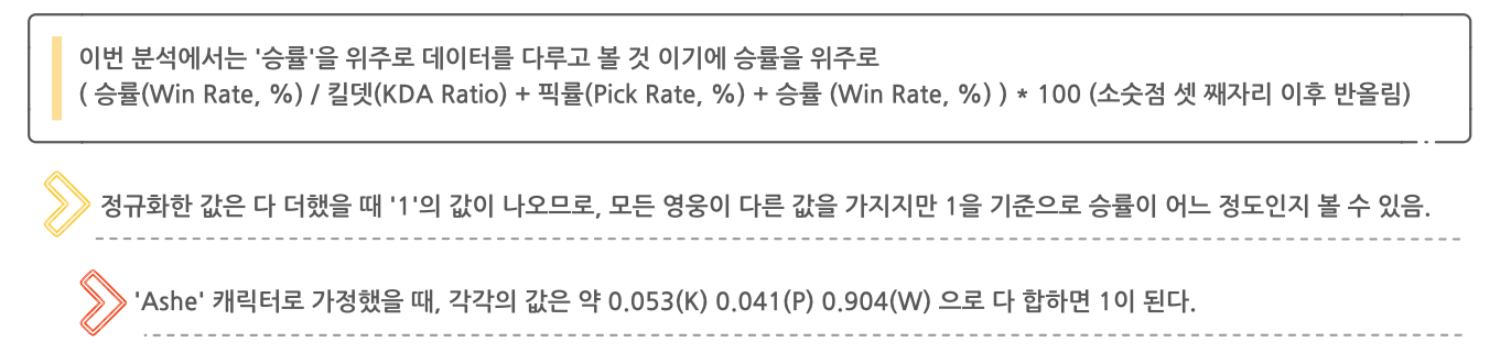 * 이 데이터 정규화 및 데이터를 기반으로 한 꿀챔 수치 등을 수치화하는 것에 대한 아이디어는