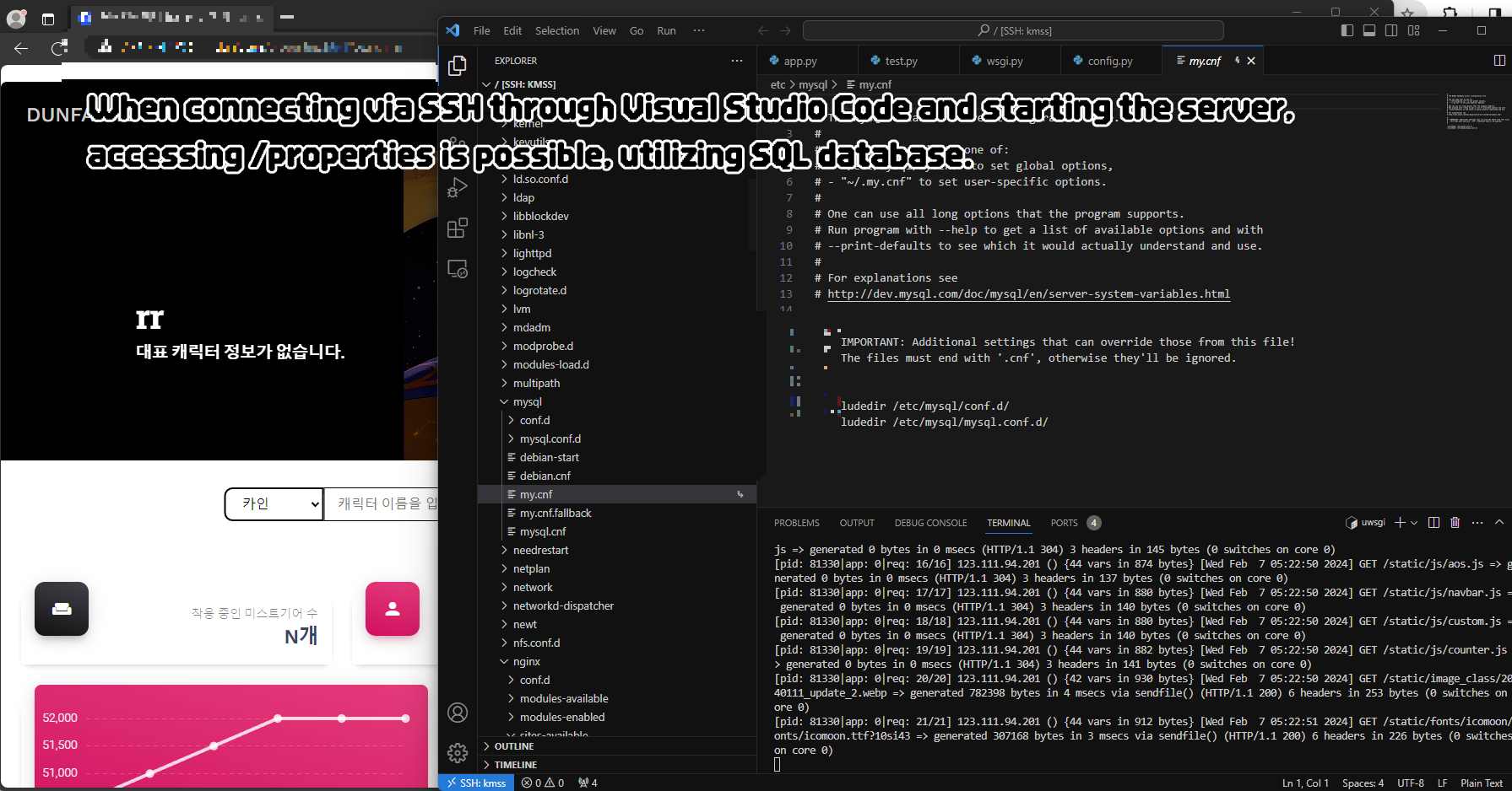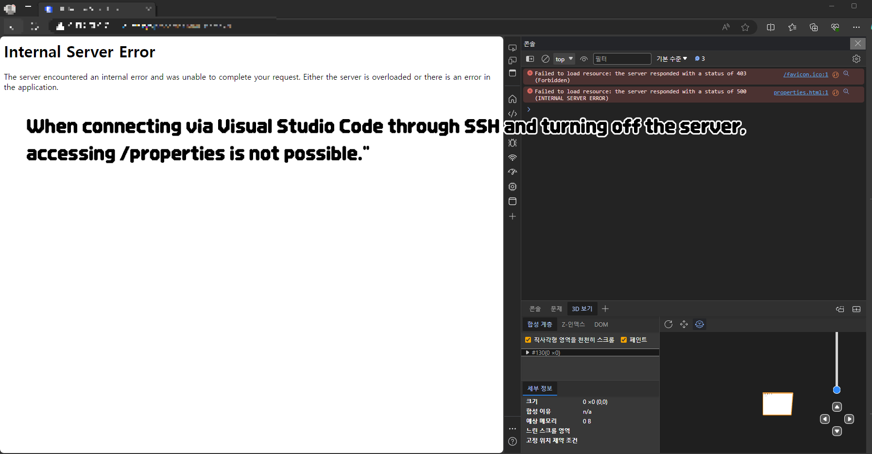 When connecting via SSH through Visual Studio Code and starting the server, accessing /properties is possible, utilizing SQL database. The address for the corresponding web page is as follows : 'deleted link'