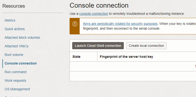 내 인스턴스 > 좌측 메뉴 [Resources] > Console connection > Launch Cloud Shell connection >