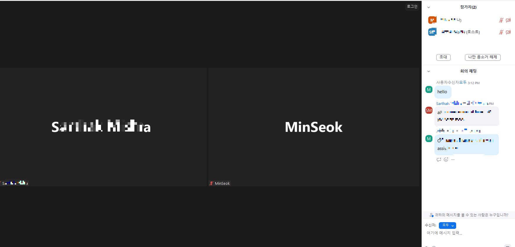 사전에 줌 요청 전에 영어 듣는 것은 가능한데 실시간으로 대화하는 것에는 어려워서 타이핑을 요청할 수 있다고